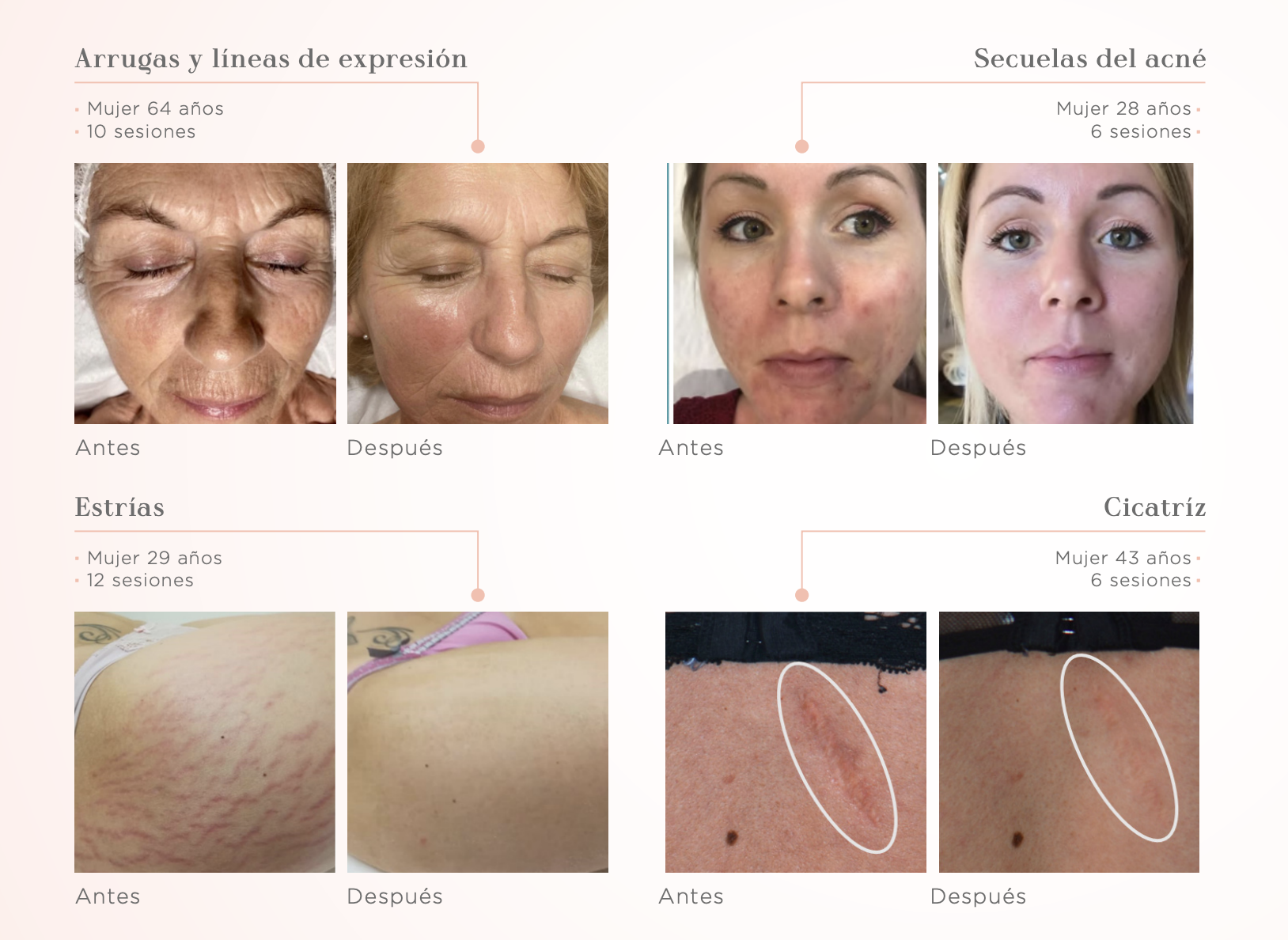 • Zonas tratables: Rostro, cuello, escote, cuerpo y manos.