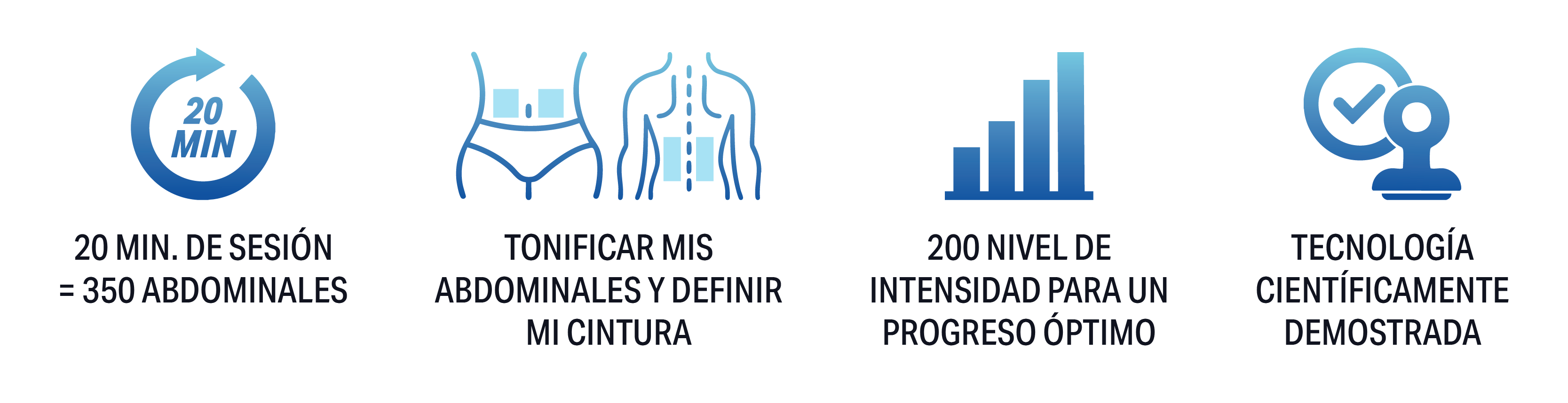 20 minutos de sesión= el equivalente a 350 abdominales Logra un entrenamiento completo y eficiente sin necesidad de largas horas en el gimnasio. Perfecto para quienes buscan optimizar su tiempo y esfuerzo.